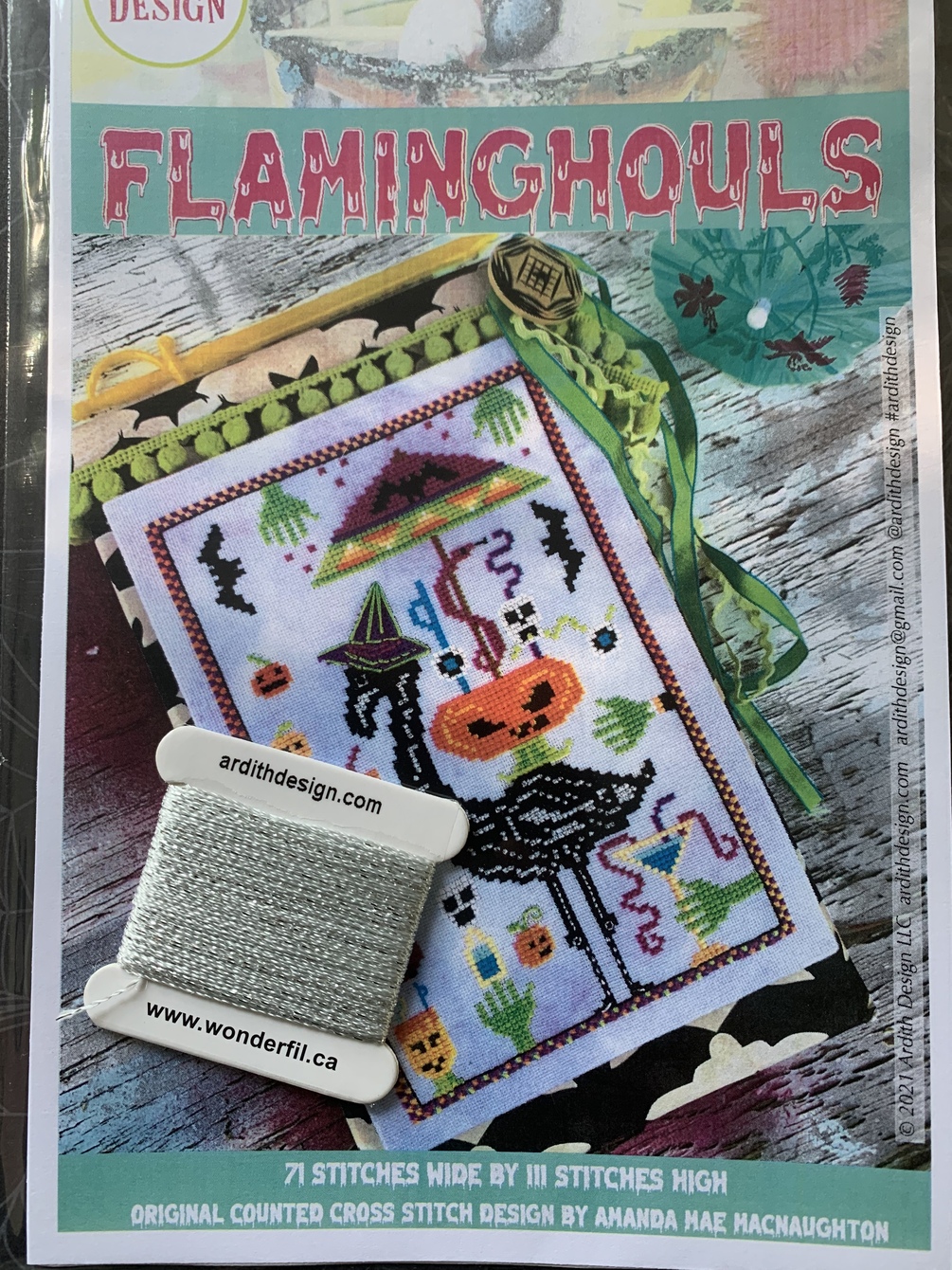 Flaminghouls Printed Chart & Spool Card Set: Cross Stitch Chart and 20 yard GlaMore spool card