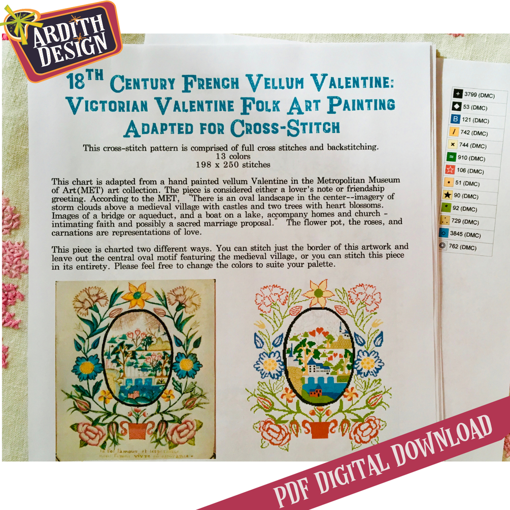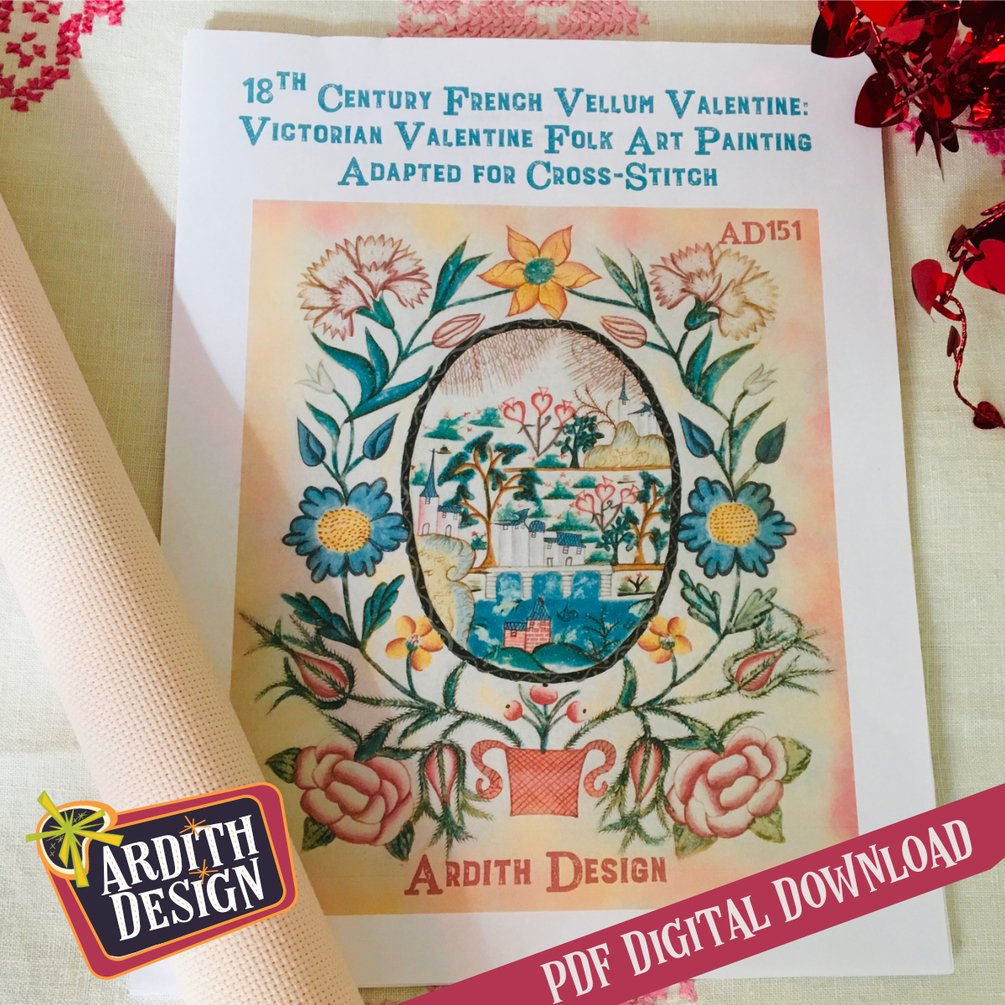18th Century French Vellum Valentine Counted Cross Stitch Pattern by Ardith Design AD151
