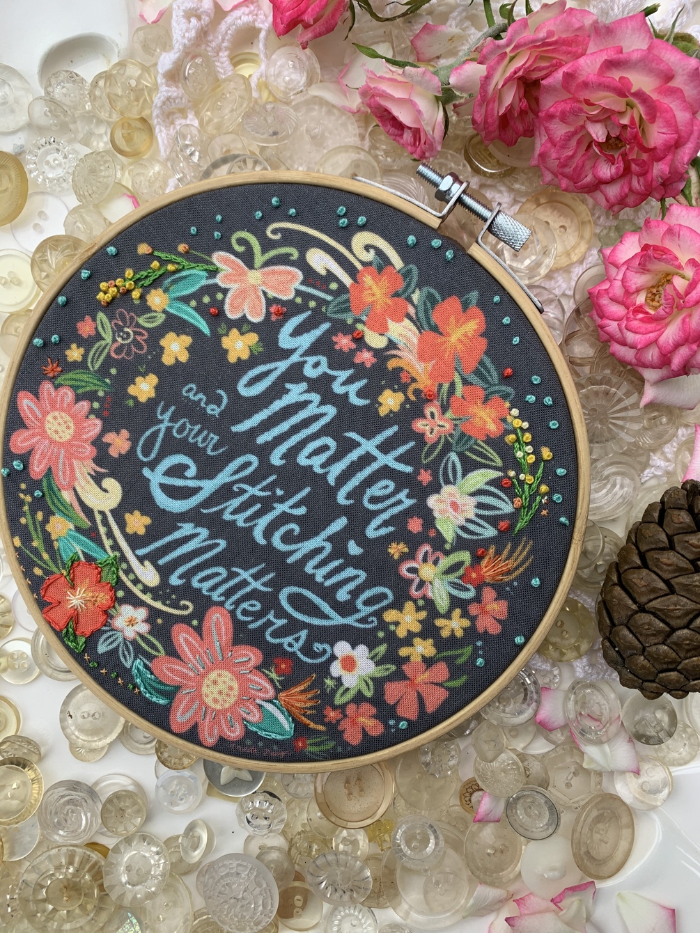 You Matter and Your Stitching Matters Hoop Embroidery Kit by Ardith Design